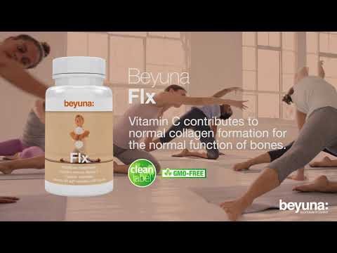 Beyuna Flx contains natural vitamin C in the form of Acerola Extract. Flx contributes to normal collagen formation for the normal function of bones. Flx contributes to normal collagen formation for the normal function of blood vessels.* Beyuna Flx also contains a combination of MSM, N-Acetyl Glucosamine, Collagen Hydrolysate Type II, Chondroitin Sulfate and Curcumin. It contains only Nu-RICE as filler.