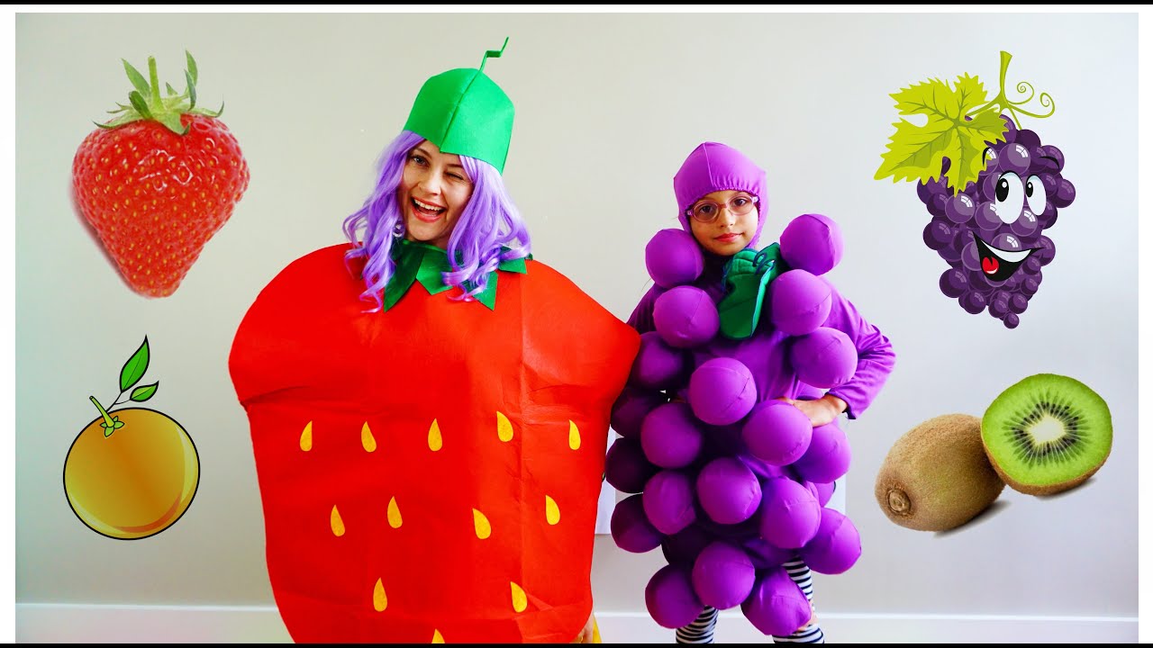 Kids channel for kids present a short video about games for kids. Kids video for kids how Stacy and Eva sing a kid’s fruit song about a lot of fruits and berries. The funny friends learn how to mix oranges and strawberries to make fruit smoothies. Make jokes with your friends like baby Eva has fun with blueberry eyes and a blue wig. Draw purple grapes and make sweet smoothies! Mix the kiwis and drink the green juice. Now you know some new healthy fruits, berries, and colors. The children have fun together. Nutrition and multivitamins for kids. Fruit smoothie recipes. Vitamins for children