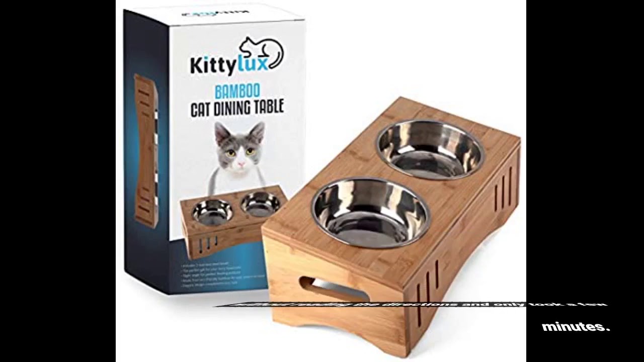 – FOREYY Raised Pet Bowls for Cats and Small Dogs, Bamboo Elevated Dog Cat Food and Water Bowls Stand Feeder with 2 Stainless Steel Bowls and Anti Slip Feet (4”Tall-20 oz Bowl)