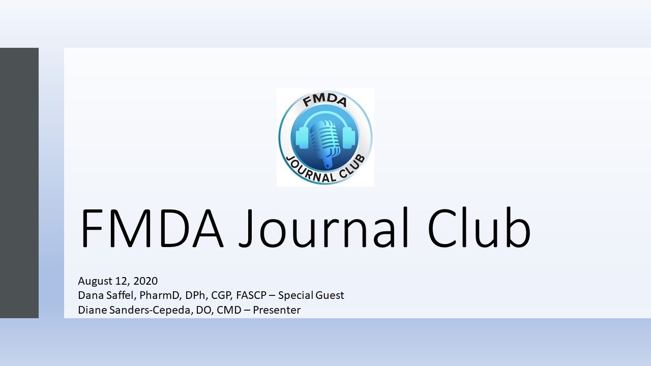 Special guest Dana Saffel, PharmD, DPh, CGP, FASCP, joins host Diane Sanders-Cepeda, DO, CMD, for the this edition of FMDA’s Journal Club.