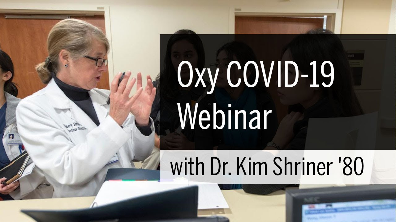 In a webinar hosted August 10, 2020 for new Occidental College families, renowned infectious disease specialist Dr. Kimberly A. Shriner ’80 joined Senior Director of Oxy’s Emmons Wellness Center Sara Semal for a conversation about the COVID-19 pandemic. Dr. Shriner practices at Huntington Hospital in Pasadena, Calif., and has been a critical expert consultant for Oxy as the administration developed plans for the fall 2020 semester. In the webinar, she discusses the latest statistics on the virus and transmission of the disease, as well as treatments, vaccines, and mitigation.