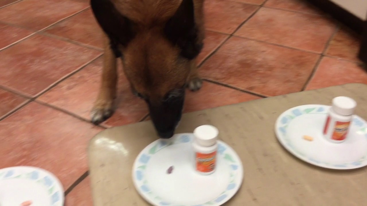 This is the first unedited take we did of her checking out the 3 fake vitamins and the real one, Catalyn. Notice how she looks at but steers clear of the 3 fake ones! Can’t fool our dog :p