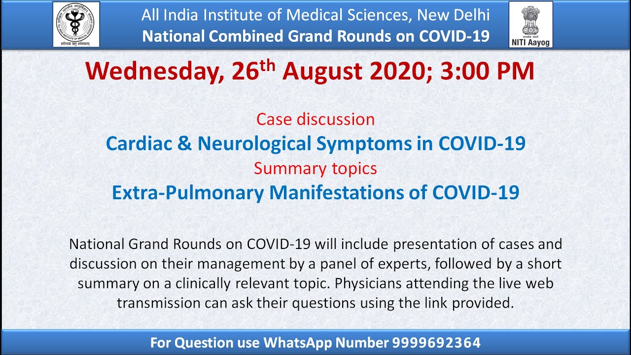National Grand Rounds on COVID-19 will include presentation of cases and discussion on their management by a panel of experts, followed by a short summary on a clinically relevant topic. Physicians attending the live web transmission can ask their questions using the link provided.