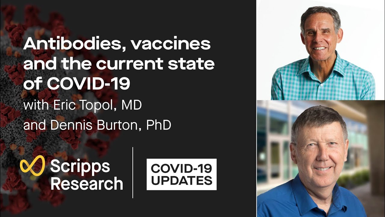 An extended conversation between Dr. Eric Topol, Director of the Scripps Research Translational Institute, and Professor Dennis Burton, Chair of the Department of Immunology and Microbiology at Scripps Research. Listen as they talk about antibody cocktail treatments, the mystery of “longhaul” COVID-19 symptoms and how close we are to developing a coronavirus vaccine.