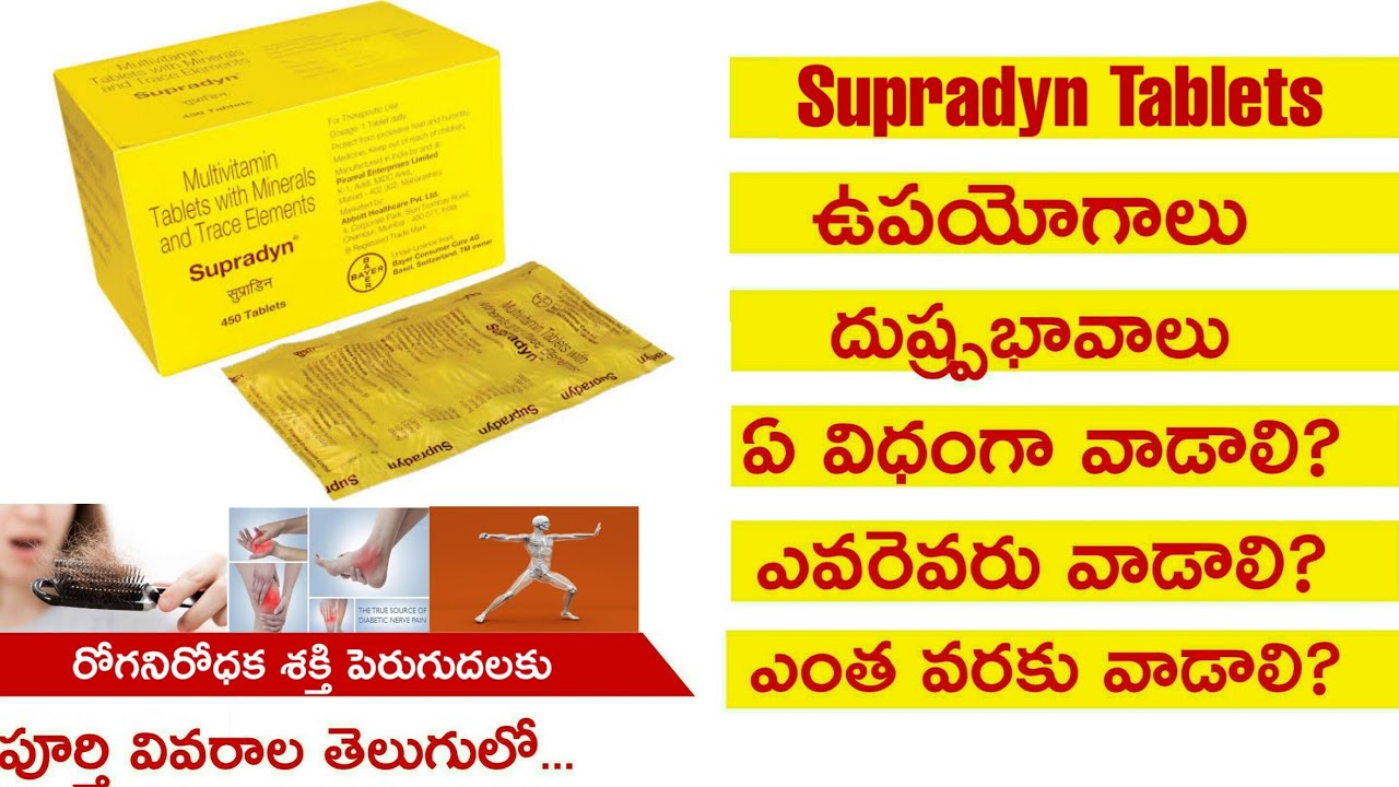 Supradyn Tablet is a multi-mineral vitamin complex used for the prophylaxis of health and improvement of the immunity. It is enriched with ingredients that improve the blood circulation and oxygen saturation. The supradyn tablet helps in the treatment of anaemia, grey hair, sour stomach and infections and provides adequate amounts of vitamins and minerals during illness.