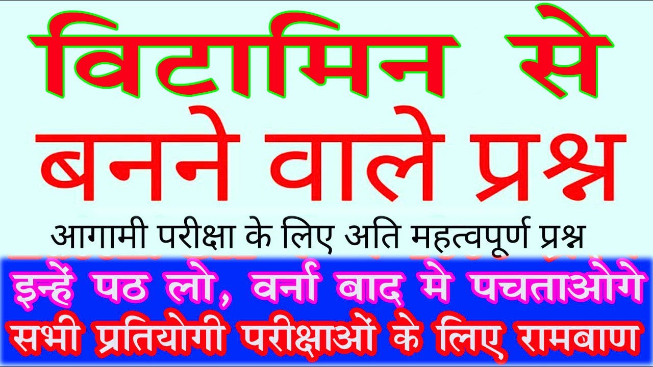 Vitamin से जुड़े Top प्रश्न, Vitamins Important questions | विटामिन से संबंधित सभी महत्वपूर्ण प्रश्न IMPORTANTnutritionquestionsTOPvideoVITAMINvitamin nutritionVITAMINSvlogYouTubeजडपरशनमहतवपरणवटमनससबधतसभRelated Posts Davis tapped to serve on state nutrition panel January 13, 2026 Why nutrition-led reformulation drives long-term growth January 13, 2026 Else Nutrition (BABYF) shareholders pass all AGM resolutions January 13, 2026 We Asked a Dietitian to Break Down the New Dietary Guidelines’ Push for More Protein January 13, 2026 The #1 Mood-Boosting Nutrient Dietitians Want Everyone to Eat More of This Winter January 13, 2026 Else Nutrition Announces Results from Annual General Meeting of Shareholders January 13, 2026