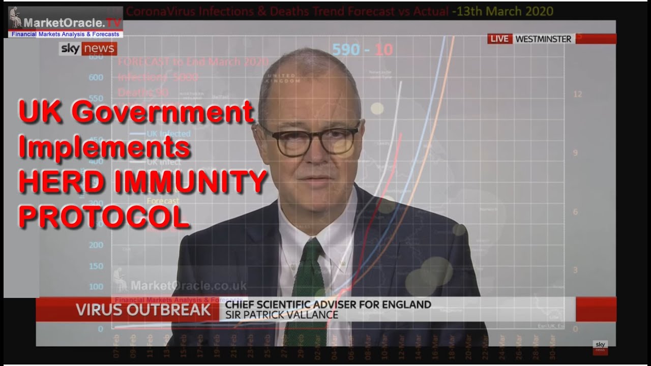 The UK Governments Chief Scientific Advisor let slip the Boris Johnson Governments cunning plan to combat the Coronavirus pandemic. Apparently the plan is not to follow what every other nation is doing in attempting to contain outbreaks but instead the scientists have convinced Boris Johnson to adopt the “HERD IMMUNITY” Protocol. Which is that once at least 60% of the population has become INFECTED with the virus then they would develop an immunity and thus no longer spread the virus onto the remaining 40% or so of the population.