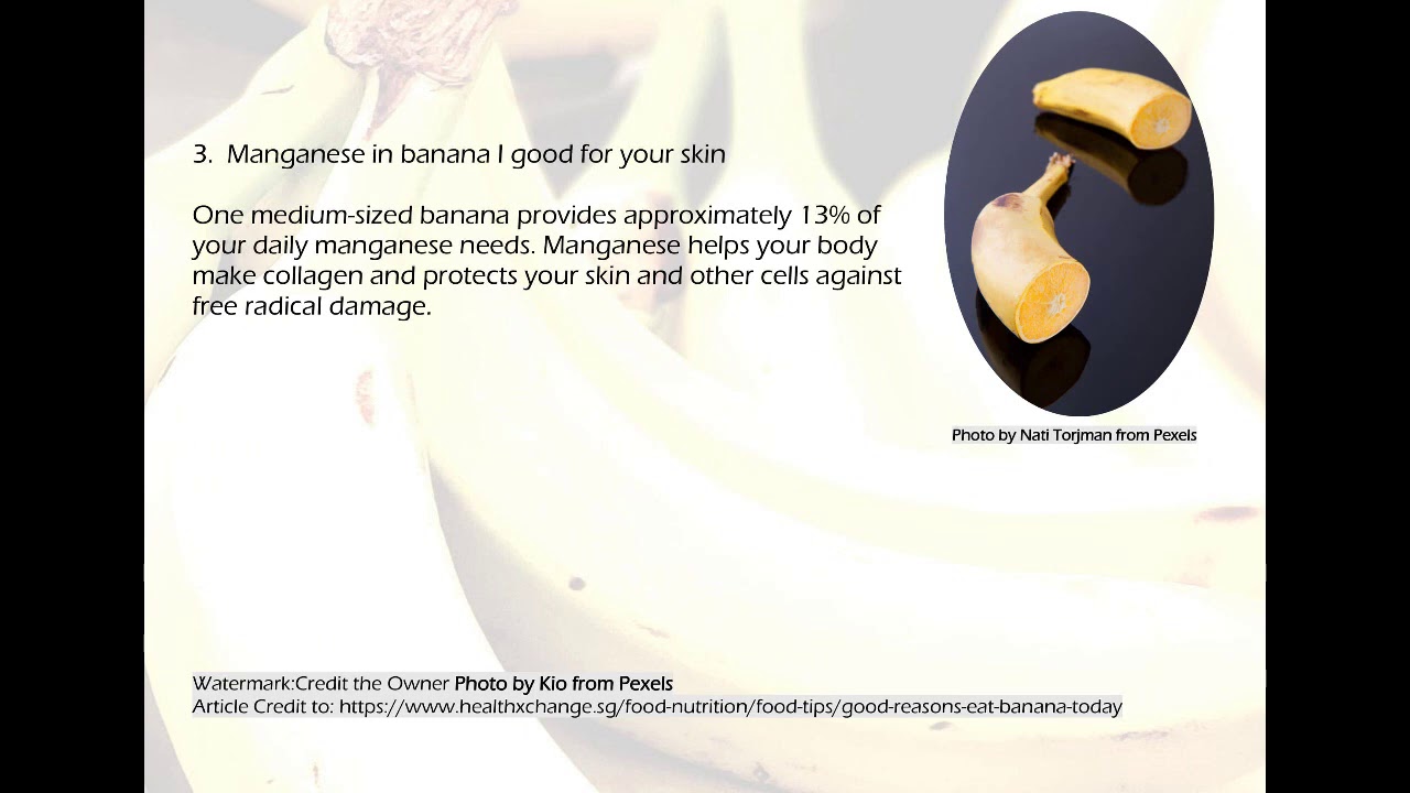 What goodness is in a banana? Other than being rich in vitamin B6, bananas are a good source of vitamin C, dietary fibre and manganese. What do these mean for your health? The Dietetics Department at Tiong Bahru Community Health Centre explains.