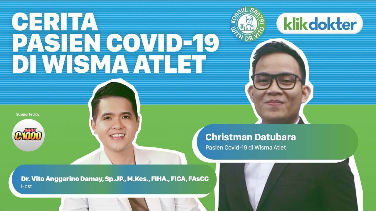 Buat kamu yang penasaran gimana cerita pasien Covid-19 di Wisma Atlet dari mulai terinfeksi hingga dinyatakan sembuh, yuk tonton #KonsulSantai bersama Christman Datubara (Pasien Covid-19 di Wisma Atlet).