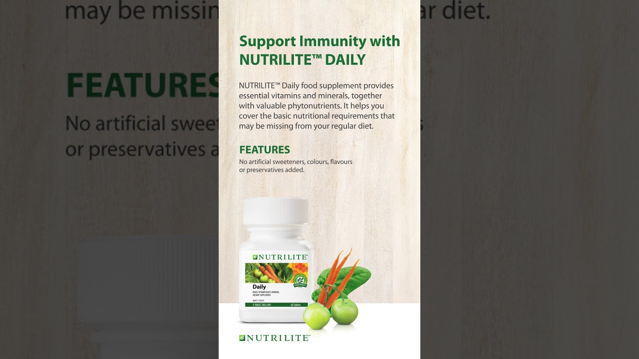 NUTRILITE Daily food supplement provides essential vitamins and minerals, together with valuable phytonutrients. It helps you cover the basic nutritional requirements that may be missing from your regular diet.
