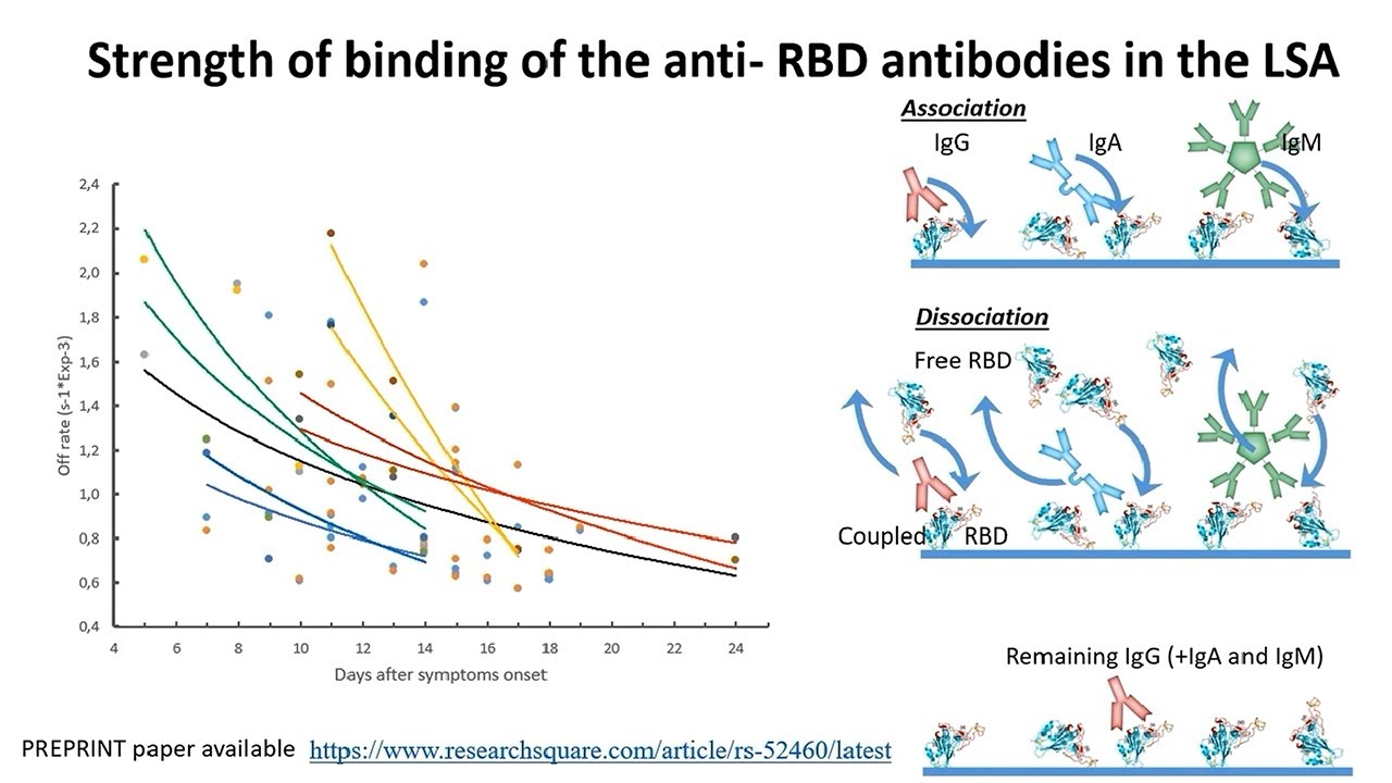 In this webinar, we discuss a highly accurate assay for simultaneously measuring the concentration and binding of IgG, IgM, and IgA antibodies to the Receptor Binding Domain (RBD) of SARS-CoV-2. This new label-free assay provides, for the first time, detailed resolution of the immune response of patients recovering from COVID-19 in a single assay and represents a significant development for clinical research teams studying immune responses to SARS-CoV-2.