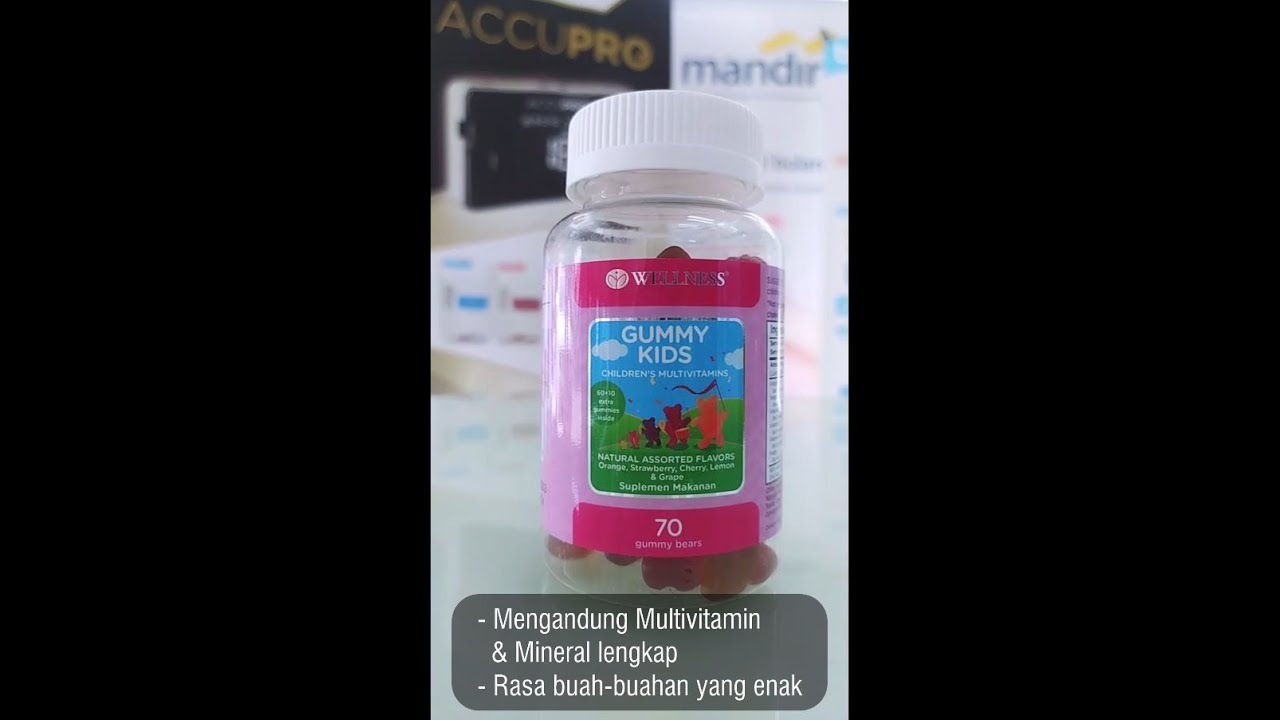 Wellness Gummy Kids merupakan multivitamin untuk anak yang mengandung Vit A, C dan E untuk meningkatkan daya tahan tubuh serta memberikan energi, B12 membantu mencegah anemia, vit D meningkatkan fungsi sistem imun, merangsang pembentukan tulang, pertumbuhan sel, menjaga kesehatan kulit serta mencegah pertumbuhan yang terhambat.