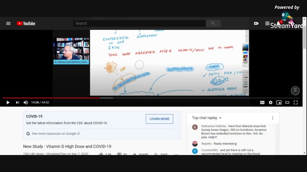 A clip from a Dr Mobeen Video discussing results from a treatment done with vitamin D and a treatment done without. No deaths when Vitamin D was used with treatment, compared to 2 deaths when no Vitamin was used. Also no vitamin D produced more ICU patients.