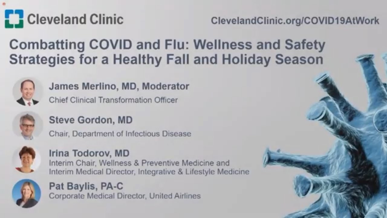 The arrival of flu season brings new challenges as it combines with the ongoing COVID-19 pandemic. As we look to gather and celebrate upcoming holidays with our loved ones, we struggle to maintain tradition while staying safe. Hear from the clinical experts at Cleveland Clinic and leaders from United Airlines about the latest updates on the flu and COVID-19, and tips on safe social gatherings and travel.