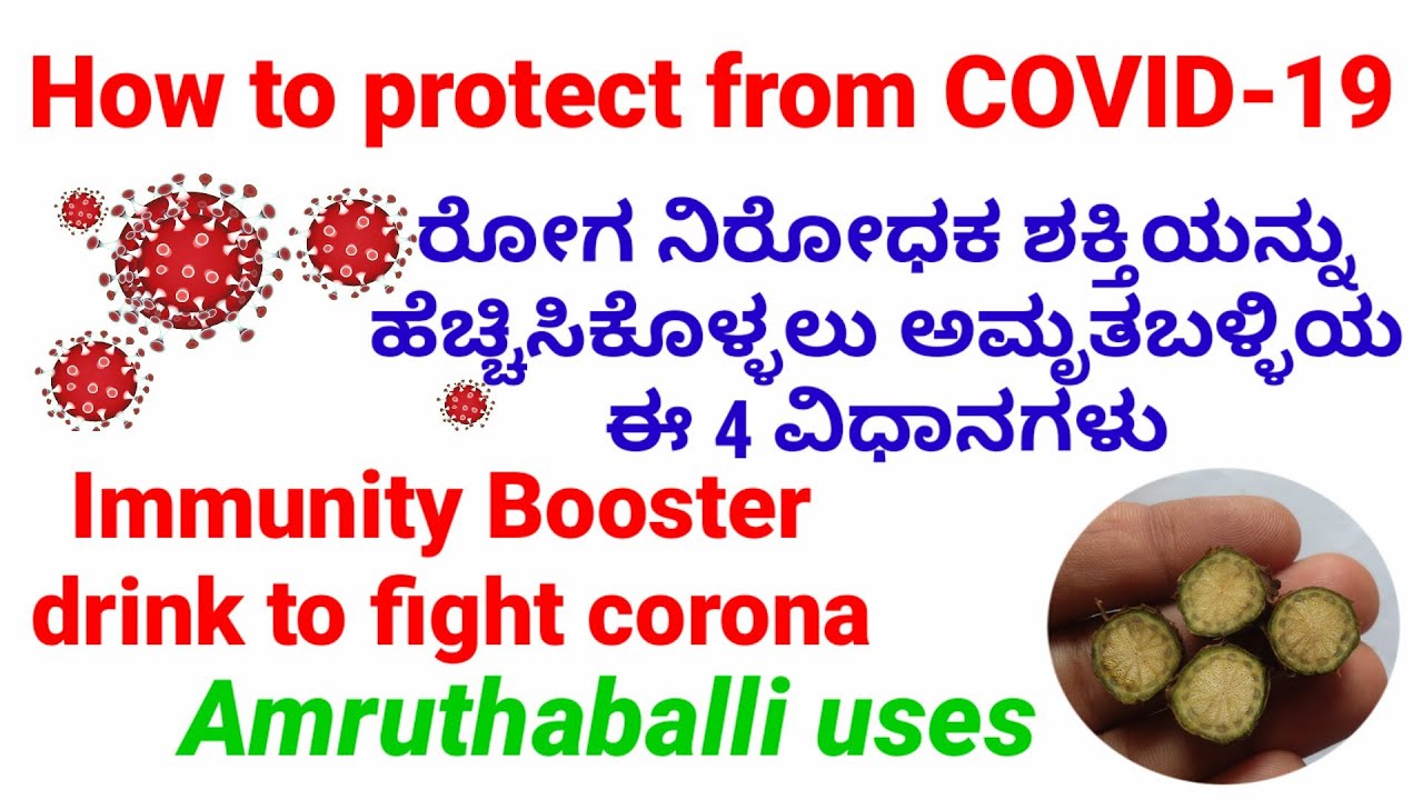 Dear Friends , This video shows you how to protect from covid 19 coronavirus using amruthaballi. Amruthaballi kashaya or giloy kashaya is home remedy to fight coronavirus. I Explained amruthaballi uses in 4 ways in kannada. These 4 ways helps us to boost our immunity power. Eating amruthaballi leaves-it helps increase immune system. Amruthaballi kashaya and Amruthaballi juice are healthy drink for immunity system and also boost immunity against corona virus.