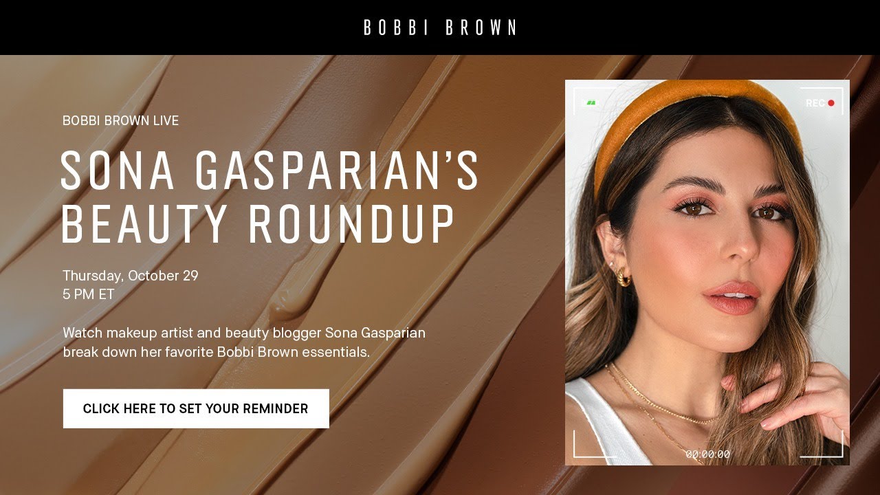Tune in 10/29 at 5 PM ET to watch makeup artist and beauty blogger Sona Gasparian break down her favorite Bobbi Brown essentials. Use code “SONALIVE15” for 15% off at bobbibrown.com.