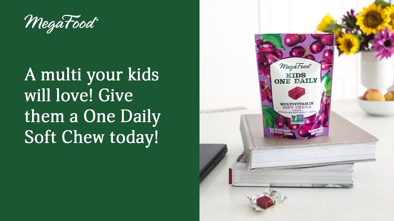 Rest assured your child is getting supplemental nutrition with MegaFood Kids One Daily Multivitamin Soft Chews support children’s healthy growth and development in a fun and yummy grape flavor.* This chewable vitamin includes a blend of real oranges, cranberries, and blueberries from our trusted farm partners and also contains antioxidant vitamins C, E, and beta carotene. Learn more at megafood.com.