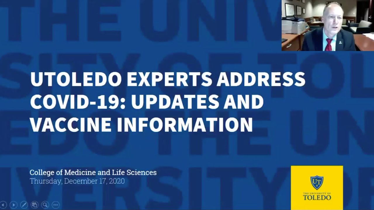 Titled “UToledo Experts Address COVID-19: Updates and Vaccine Information,” the WebEx Town Hall was hosted by College of Medicine and Life Sciences Dean Christopher J. Cooper on Dec. 17, 2020.