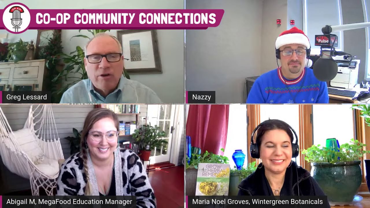 Co-op Community Connections LIVE! Join us as Greg Lessard from Concord Food Co-op and Nazzy from 107.7 FM welcome Maria Noel Groves, Clinical Herbalist, and Abigial McShinsky, Education Specialist at MegaFood, to discuss immune tips for winter wellness.