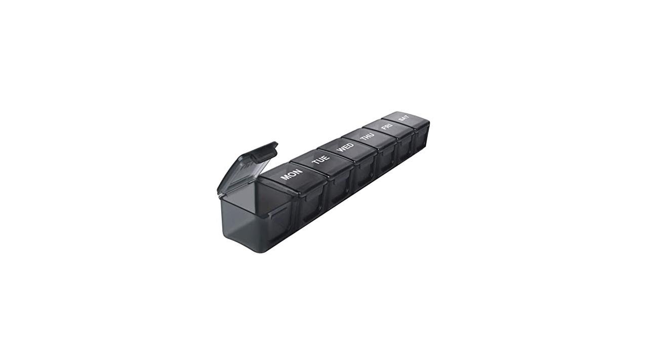 Extra Large Weekly Pill Organizer, Sukuos XL Daily Pill Cases for Pills/Vitamin/Fish Oil/Supplements (Black)