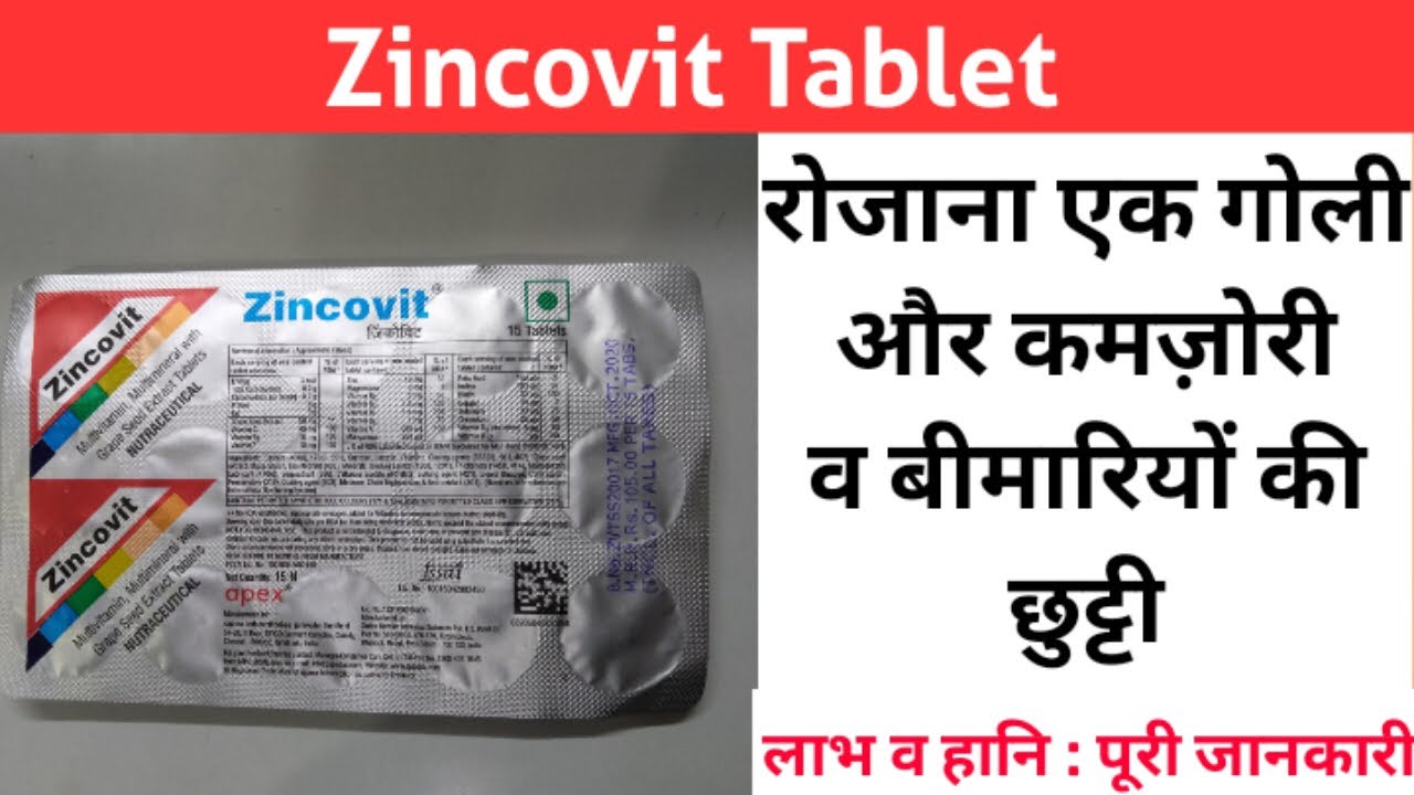 जिंकोविट टैबलेट को (Zincovit Apex Tablet) जिंकोविट अपैक्स टैबलेट के नाम से जाना जाता है। व्यक्ति के शरीर में विटामिन की कमी होने पर चिकिस्तक जिंकोविट टैबलेट की सलाह दे सकते है। आपको बता दे, इस टेबलेट में विटामिन, आवश्यक खनिज और जस्ता आदि का उच्च मिश्रण होता हैं। यह शरीर की प्रतिशा प्रणाली बढ़ाने में महत्वपूर्ण भूमिका निभाता हैं। ऐसा कहा जाता है जिंक प्रतिशा प्रणाली को बढ़ावा देता है। इसके अलावा जिंककोविट में सेलेनियम एक प्रभावी प्रतिरक्षा बूस्टर के रूप में कार्य करता है जो प्रतिरक्षा की मजबूतता सुनिश्चित करता है। विटामिन ए स्वस्थ कोशिका वृद्धि को बढ़ावा देता है जबकि विटामिन सी आपके शरीर के सभी हिस्सों में ऊतकों की वृद्धि और मरम्मत में मदद करता है। जिंकविट की गोलियों का उपयोग पोषण पूरक के रूप में किया जा सकता है