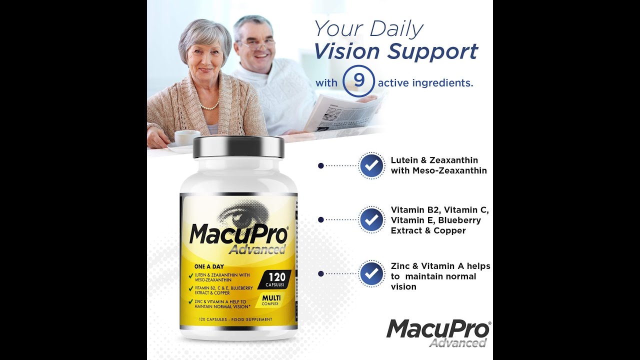 MacuPro Advanced contains an advanced combination of specially selected nutrients Lutein, Zeaxanthin, Meso Zeaxanthin and Blueberry Extract as well as essential vitamins and mineral Vitamin A, Vitamin B2, Vitamin C, Vitamin E, Copper and Zinc.