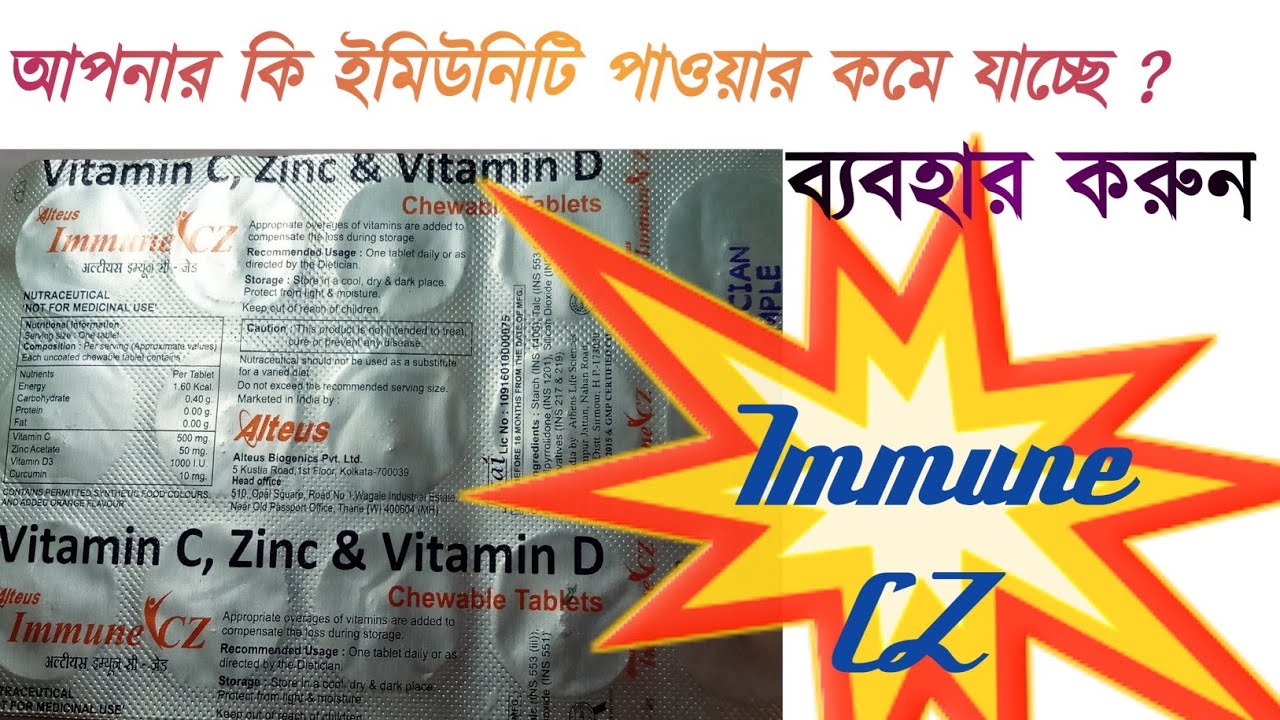 today we discuss about immune CZ tablets. It is a most popular immunity booster supplement in India. It boost immune system of human body, who suffering of any disease and whose immunity system is very weak. It contains by carbohydrate, energy, vitamin c, Vitamin d, zinc and curcumin.