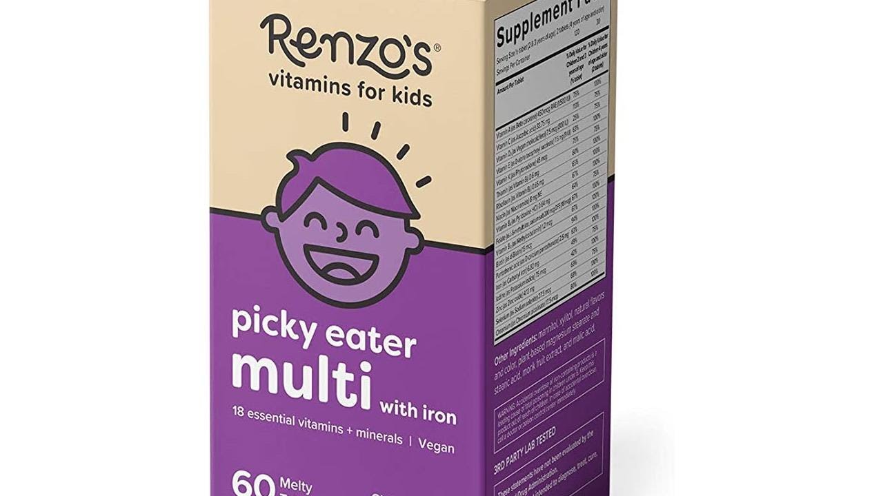 Renzo’s Picky Eater Kids Multivitamin with Iron, Dissolvable Vegan Vitamins for Kids, Zero Sugar, Cherry Cherry Mo’ Cherry Flavor, 60 Melty Tabs