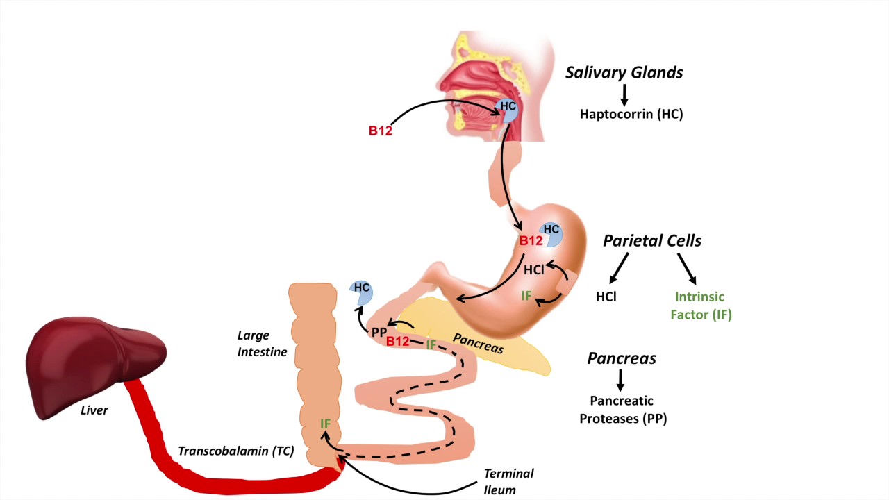 This lesson details the complex process of gastrointestinal absorption of vitamin b12 through utilization of haptocorrin and intrinsic factor, the process of transportation of vitamin b12 through our body via transcobalamin and reabsorption of vitamin b12 in the kidney with the use of megalin. This lesson also discusses the two enzymes that are dependent on vitamin b12, and finally this lesson discusses how much vitamin b12 we need in our diet.