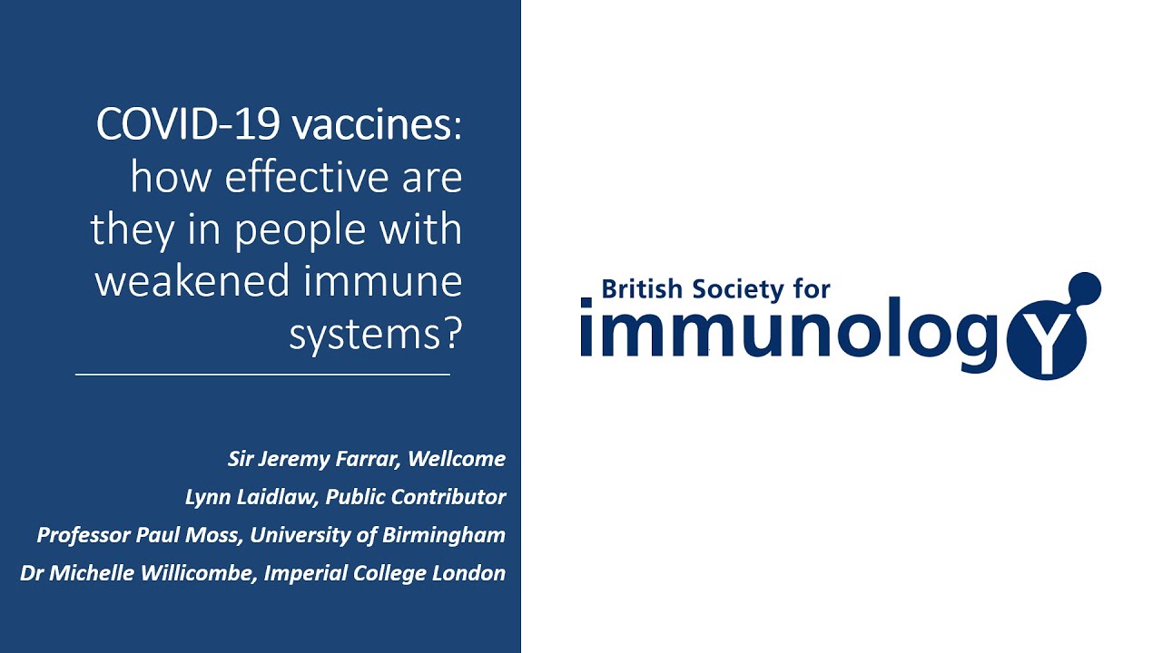 The British Society for Immunology is pleased to hold this free public webinar ‘COVID-19 vaccines: how effective are they in people with weakened immune systems?’