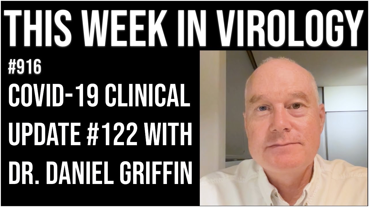 In COVID-19 clinical update #122, Dr. Griffin discusses vaccine availability and coverage among children, post-infection health impairments in children and adolescents, infection detection using salvia and nasopharyngeal samples, effectiveness of vaccines during delta dominance, durability of vaccine against severe outcomes, concern in the postvaccination era, infection rebound after Paxlovid & Molnupiravir, lack of improvement after adding ivermectin to standard care, duration of shedding of virus, how thromboprophylaxis reduces thromboembolism but increases major bleeding, multi-lineage neural and myelin dysregulation caused by infection, and the association between vaccination and post-acute infection.