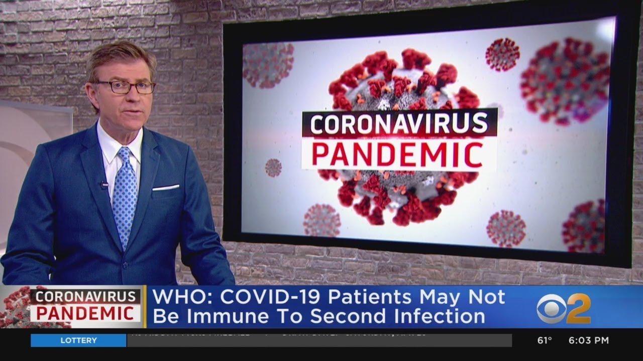 THE EVENTUAL ECONOMIC REOPENING. DAVE CARLUN, CBS 2 NEWS. THE WORLD HEALTH ORGANIZATION SAYS PEOPLE WHO ALREADY HAD CORONAVIRUS MAY NOT BE IMMUNE FROM A SECOND INFECTION. THE GROUP CAUTIONING AGAINST GOVERNMENTS THAT ARE CONSIDERING ISSUING SO-CALLED IMMUNITY AT THAT POINTS TO PEOPLE WHO HAD COVID- 19, ASSUMING THEY ARE STAFF TO RESUME NORMAL LIFE.