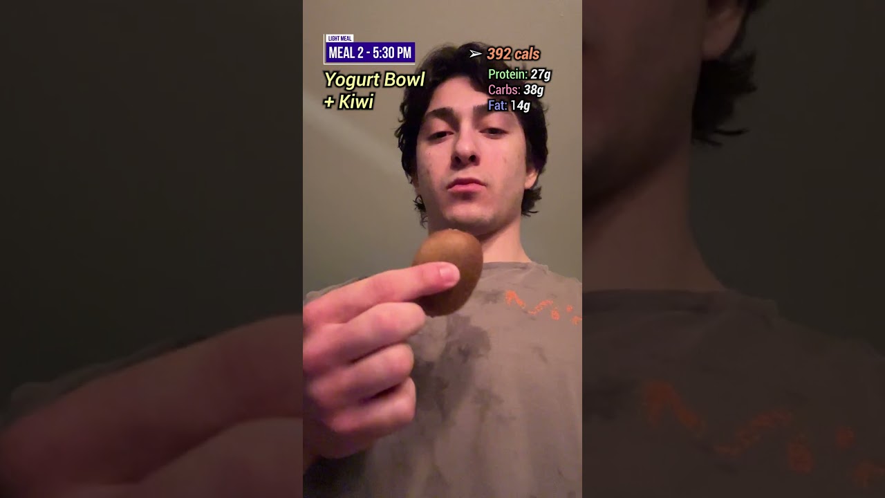 First is a smoothie composed of oats, berries, almond milk, a banana, and protein powder. I drink that about 2 hours before my workout, and then right before I leave I take half a teaspoon of salt, and half a teaspoon of no salt, mix it in some water and chug it down for some quick electrolytes. Then I drink some pre workout on my way to the gym. After my lift, I drink 50g of protein powder with 8g of creatine, which is currently completely free with code “MAXE” until tomorrow, plus 46% off everything on the website. Then I eat some yogurt with mixed berries and nuts, before chowing down 1 entire kiwi. Then I have some grilled chicken, hand crafted by my mom, with rice and buffalo wing sauce and 1 sliced up apple. After some cardio, I eat that same meal again, but this time broccoli instead of the apple. And then I have 1 pathetic scoop of peanut butter for healthy fats, and 1 more protein shake before going to bed for a total of 220 grams of protein, 220 grams of carbs, 50g of fat, and a mere 2200 calories.