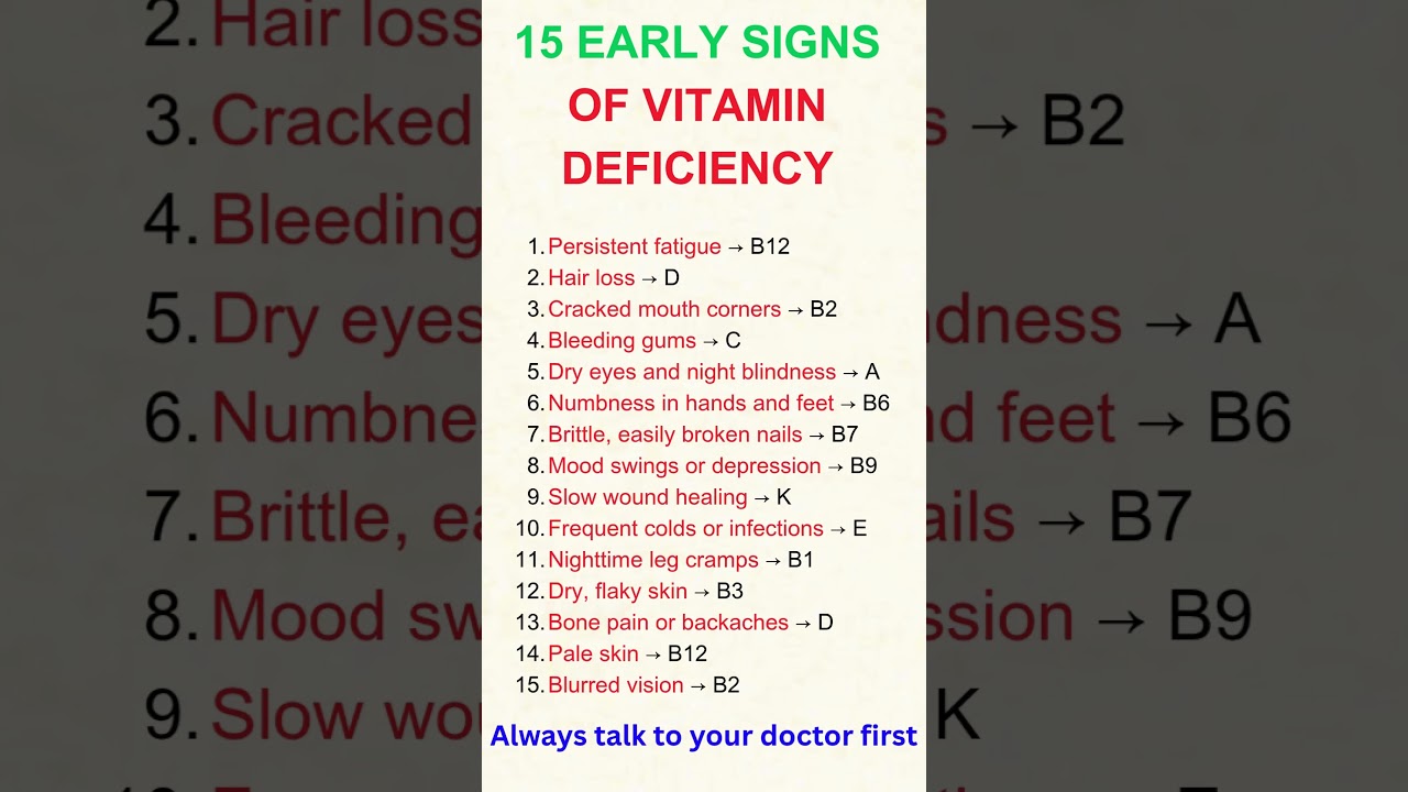 Are you constantly tired, losing hair, or having mood swings? These could be early warning signs of vitamin deficiency. In this video, we break down 15 common symptoms your body uses to signal that it’s missing essential nutrients like B12, D, A, and more.