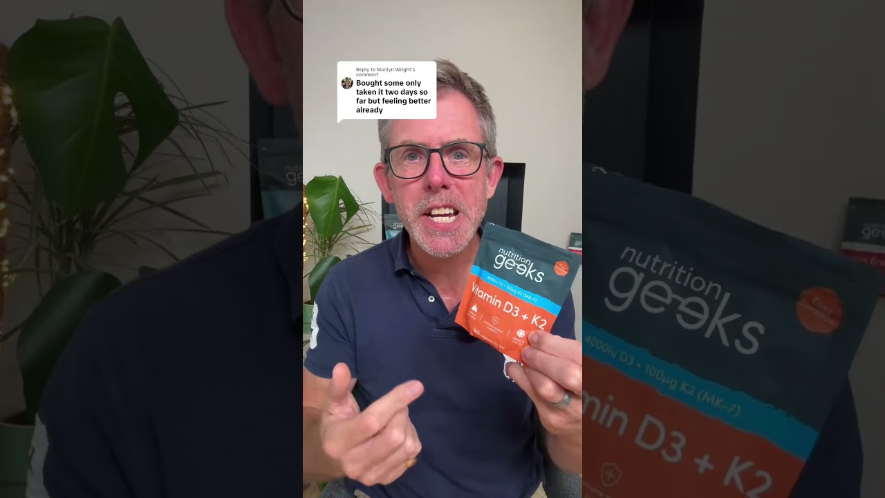 This one’s for all the naysayers and the people that refuse to listen. Marilyn, thank you so much for your comment. Bought some, only taken it for two days so far, but feeling better already. Now I’ve grabbed your attention. Let’s have a look at the product that Marin is talking about. It’s the viral trending vitamin D3 K2 product from the award-winning nutrition geeks. The NHS website suggests we should all be considering taking a vitamin D supplement because we don’t get enough sunshine in this country. It’s a great product for immune system support as well as good nutrition for your bones, your muscles, and your teeth. And the K2 is the delivery driver. It gets the vitamin D3 where it’s needed the most. And it’s a formula that’s backed by PhD scientists. It’s incredible value at $9.99 for a year’s supply. I’ve left a link below for