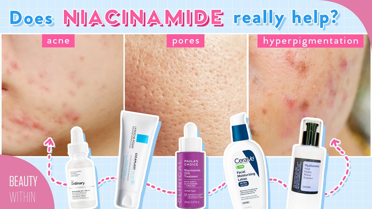 Stable reliable friend! (Fel: Yeah.) Like Felicia š *Fel is so touched* It’s okay. We stabilize each other. We’re the vitamin Cs and Bs. Hello our favorite people! And welcome back to Beauty Within. It’s your hosts, Felicia and Rowena. And it’s not often in skincare that you come across an ingredient that can offer benefits to ALL skin types and improve multiple skin conditions like hyperpigmentation, acne, balancing sebum, evening out those blotchy areas, and really strengthening the skin barrier and more all at once! But there is one that is called Niacinamide. We’re not gonna say that it’s going to work the same wonders for every single person out there. Because at the end of the day, we’re all very different. But if there were an ingredient that comes close like a superhero that doesn’t wear a cape, it would be the friendly and powerful vitamin B3 or niacinamide. (Fel: Yeah!) And we’ve discussed the basics of niacinamide in a previous video. But on top of that, today we also wanted to present to you all another very underrated vitamin that can work magic for the skin in the B family called panthenol, which is also known as vitamin B5. By the end of this episode, you’re going to know exactly how these two essential vitamins work on our skin, the truly magical benefits it can give, if you do happen to get irritated why this may be happening, and when and why we should all be trying to incorporate these two amazing ingredients into our skincare routine. Stat! So without further ado, let’s present to you niacinamide and panthenol! Starting off with my best friend in skincare! Sorry Ro. *Ro frowns* But the love is real when it comes to niacinamide. So as we mentioned, niacinamide is also known as nicotinamide. Which is also known as vitamin B3, which is a water-soluble vitamin. It’s an essential vitamin that our bodies need that we don’t produce ourselves. So we need to get it in foods that are high in niacin like liver or mushrooms. Nay to liver. Yay to mushrooms. Just, you know, it’s for the record. Liveeeeeer. Yuum! (Fel: Have you had liver?) I mean I’ve tried like (Fel: chicken liver.) fao fa fa fo (Fel: foie gras) like once and I’m like, “Mhmh I cannot!” And it’s also found in a lot of different types of food. And we convert the niacin into active niacinamide, which then acts as a precursor to coenzymes called NAD and NADP. Basically, these coenzymes are essential and helps us by boosting the cellular metabolism in our bodies. And in basic terms, this means that they give our skin cells the energy to carry out cell functions. And when we talk about skin, we’re talking a lot about the health of our cells. So cell functions include more than 40 biochemical processes! Including really important roles like repairing our DNA and cell turnover, which is, as we know, super important for youthful, clear, and glowing skin. Yes, cell turnover for liiife! But even though we can get niacinamide through our diet, because it is water soluble, it can’t be stored in our bodies for long. So applying niacinamide topically to the skin is the most effective way to really give our skin that boost and give it all the benefits that we previously mentioned. Now, what can it do when it’s applied to our skin? I think the question is, “What can’t it do?” (Fel: Seriously.) First, it helps with lightening hyperpigmentation and those dark spots and areas on our skin, as well as the overall brightening of our complexion. Niacinamide works as a tyrosinase inhibitor in the skin. And tyrosinase, we mentioned in our hyperpigmentation video, is the reason for pigmentation and the discoloration that forms on our skin. So niacinamide, when used topically, helps to make sure the cells aren’t holding onto too much pigment and reduce the transfer of the dark pigment from the melanocytes to the keratinocytes. So it essentially nips it at the bud! Right at the root of the hyperpigmentation problem. (Ro: Woo!) Woo! On top of that, not only can your acne marks, sunspots, and other forms of hyperpigmentation be lightened. But also because you’re applying it to the entire face, usually in a toner, serum, or moisturizing form, it will help to brighten the entire face, making it seem more glowing and radiant all around. And there are a lot of studies that support this benefit. One is a study that showed eighteen women using 5% niacinamide on one side of their face with a neutral vehicle on the other. And it was found that after eight weeks of use, there was significant lightening of hyperpigmentation on the side where the niacinamide was used. If you want a more solid breakdown of how exactly this works, we explain it all in the video we’ll list for you below. Next major benefit is that it helps with acne and balancing oils because niacinamide is proven to have antimicrobial and anti-inflammatory properties. And the amount that it can really help with this also comes down to the concentration and the specific product formulation. When we have breakouts, it’s usually because of inflammation going on inside, coupled with overactive sebum production in the sebaceous glands. All mixed with dead skin cells and bacteria! A chicka-chicka! What what! Party party! And one really important thing to know is that acne-prone skin actually has an acidic pH more than normal. And oily, acne-prone skin is also very low in an essential fatty acid known as linoleic acid. And this can be a component that causes the pores to get clogged and, therefore, create breakouts. So what niacinamide does is calm down the inflammation that can cause redness surrounding those areas, balances the skin’s pH level to control sebum secretion, and, therefore, really help with the healing of active breakouts. (Fel: Yeah.) So when you apply it, it’s like a “woosah” for the skin. Next is an essential one when it comes to skincare in general. And that’s skin barrier! Our skin is in itself a protective bar