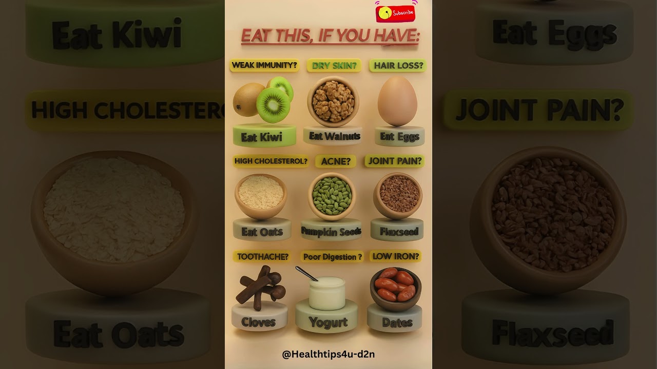 Are you struggling with common health issues like weak immunity, dry skin, or hair loss? Look no further! This video highlights 9 nutritious foods that can help alleviate these problems and more. From kiwi to dates, we’ll explore the benefits of each food and how they can improve your overall well-being.