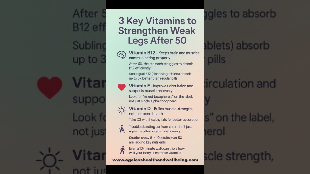 #VitaminD #VitaminB12 #VitaminE #HealthyAging #LegStrength #MuscleHealth #Over50Fitness #Over50Health #HealthyLifestyle #ActiveAfter50 #StrongerLegs #HealthyOver50 #AgingWell #NutritionTips #BoneHealth #MuscleRecovery #CirculationBoost #StayStrong #WellnessTips #NaturalRemedies #HealthyLiving #MobilityMatters #SeniorFitness #AgelessHealth #HealthAfter50 #HealthyOver50 #WellnessOver50 #StrongAfter50 #AgelessLiving #LongevityTips #HealthyBodyHealthyMind #VitalityOver50 #HealthyMuscles #HealthyBones #EatForStrength #DailyWellness #NaturalHealthTips #AgeStrong #HolisticHealth #NutritionForSeniors #StayActive #Over50Wellness #StrengthAndVitality #HealthyChoicesDaily #BetterWithAge