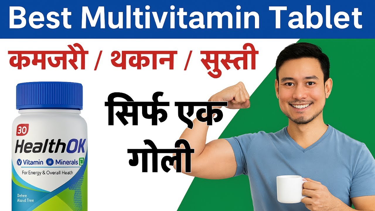 [संगीत] वेलकम बैक टू द न्यू वीडियो गाइस। आज हम एक नए वीडियो के बारे में बात करेंगे। सो आज का टॉपिक है हमारा हेल्थ ओके टैबलेट्स के बारे में। यह एक मल्टीविटामिन टेबलेट है। तो चलिए इस टैबलेट को थोड़ा डिटेल में समझते हैं। सबसे पहले इसके हम कंपोजिशन को समझते हैं। अब क्योंकि ये मल्टीविटमिन है तो इसमें विटामिंस प्रेजेंट होंगे। जो कि यहां पे सबसे पहले आपको दिख रहा है विटामिन ए, सी, डी, ई और सारे बी कॉम्प्लेक्स आपको यहां पर दिख रहे हैं। विटामिंस के साथ इसमें मिनरल्स भी प्रेजेंट होते हैं। तो मिनरल डेफिशिएंसी के लिए भी ये बहुत हेल्पफुल होता है। जैसे जिंक हो गया, आयरन हो गया, कैल्शियम हो गया, मैग्नीशियम, सेलेनियम ये बहुत इंपॉर्टेंट होता है हमारी बॉडी के लिए। थर्ड अमीनो एसिड्स भी हमारे बॉडी के लिए बहुत ज्यादा हेल्पफुल होता है क्योंकि अमीनो एसिड से प्रोटीन बनता है। प्रोटीन से हमें एनर्जी आती है जिसमें आता है एलर्जिनाइन, एलग्लटामिक एसिड। यह भी प्रेजेंट होता है। जिनसिन स्ट्रैक जिनसिन बेसिकली आपकी स्टेमिना के लिए और एनर्जी बढ़ाने के लिए यह इंग्रेडिएंट रहता है और एंटीऑक्सीडेंट जो कि फ्री रेडिकल से फाइट करता है जो कि टॉक्सिक आपकी बॉडी में बन जाता है फ्री रेडिकल ज्यादा होने से। तो ये सारी चीजें इसमें प्रेजेंट होती है। इस वजह से इस टैबलेट को बहुत ही ज्यादा प्रिस्राइब किया जाता है और यह बहुत ही हेल्पफुल होता है अगर आपको किसी भी चीज की कमी हो रही है। तो आगे हम देखेंगे इसके यूजज़ क्या है? सब फिर अभी नेक्स्ट हम वही यूजज़ देखेंगे। सबसे पहले यूजज़ यहां पे क्या है? वीकनेस, फटीग और थकान। सबसे पहली चीज अगर आपको यह तीनों चीज हो रही है तो आप इस सप्लीमेंट को यानी इस टैबलेट को आप ले सकते हो। सेकंड विटामिन और मिनरल डेफिशिएंसी जो कि ऑब्वियस सी बात है क्योंकि उसमें प्रेजेंट ही वो है तो अगर आपको डिफिशिएंसी है तो आप ले सकते हो। थर्ड अगर आपकी लो इम्युनिटी है। आपको बार-बार इनफेक्शन हो जाता है तभी भी आपको यह आप यह टैबलेट को ले सकते हो। फोर्थ रिकवरी आपके रिकवरी को फास्ट कर देता है अगर इलनेस या कोई भी सर्जरी के बाद। फिफ्थ स्ट्रेस या फिर लाइफस्टाइल रिलेटेड वीकनेस जो होता है उससे भी इंप्रूव उसमें भी आपको यह हेल्पफुल होता है टैबलेट। तो आप उसे भी यूज कर सकते हो। एनर्जी और स्टेमिना बूस्ट करने के लिए जो हमें हमने देखा जिनसिन स्ट्रक प्रेजेंट है। तो ये सारी चीजों के लिए इस टैबलेट को यूज किया जाता है। तो आई होप इसके यूजज़ समझ गया होगा। अब देखते हैं इसके डोज़ क्या है? हमें कितना लेना चाहिए इसको। देखो नॉर्मली क्या होता है? एक टेबलेट पर डे आपको लेना है खाना खाने के बाद। और हमेशा एक चीज मैं रिपीट करता हूं हर वीडियो में कि डॉक्टर के प्रस्रा