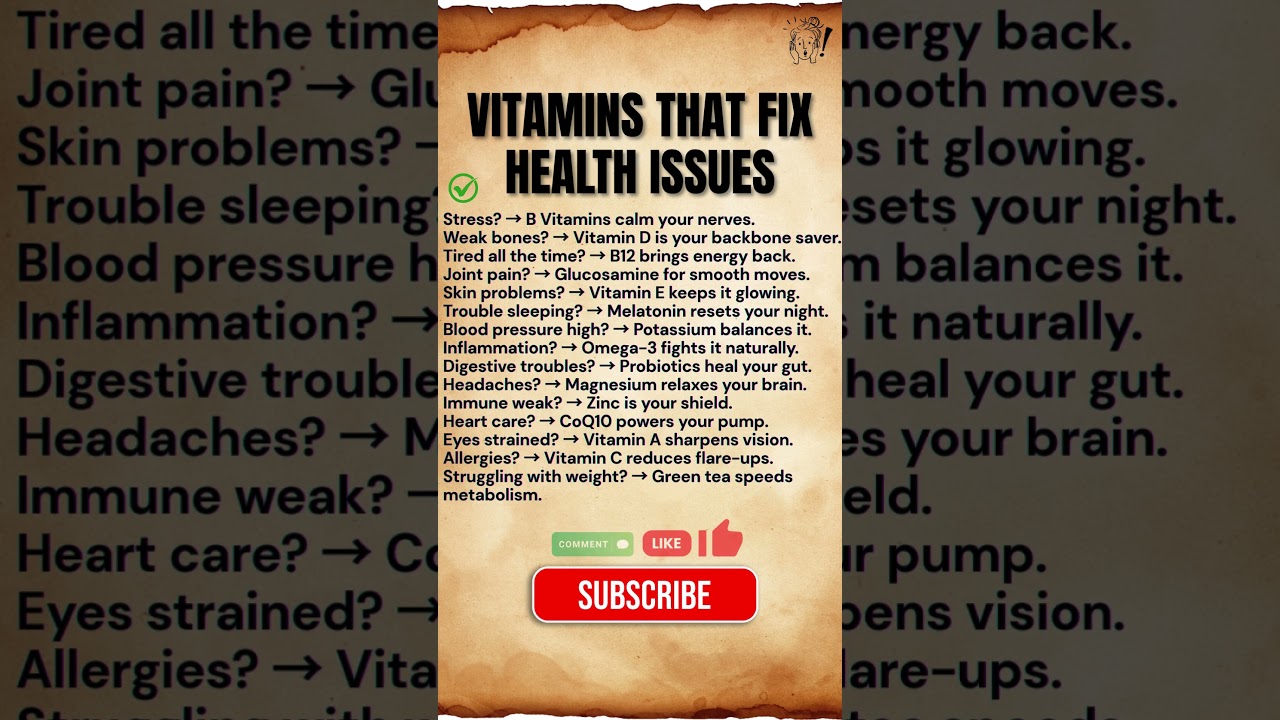 From Vitamin D for bone strength to Omega-3 for inflammation and B12 for energy — this video gives you a complete vitamin guide for better health.