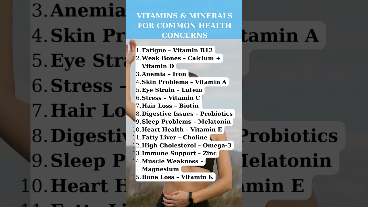 Discover the best vitamins and minerals for your health! From fatigue and weak bones to stress, hair loss, and immune support, learn which nutrients help boost energy, improve sleep, support heart and bone health, and enhance overall wellness. Find the right supplement for your needs and feel your best every day!