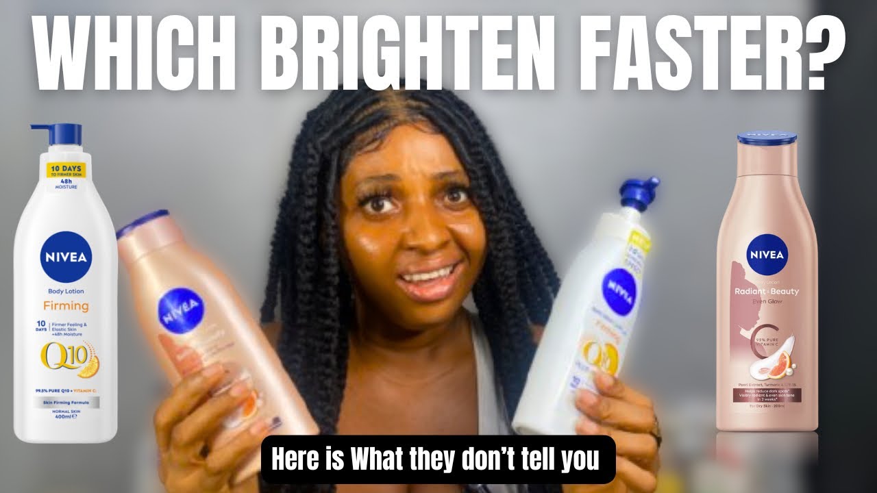 Here with me I have the Nivea rather than beauty even glow body lotion. And I also have with me here the Nivea Q10 vitamin C body lotion. Which brightens faster? If you’ve ever been in a skincare store and you’re wondering which of these two lotion you should go for, whether you should go for this or this. [Music] In this video, I’m going to be sharing with you everything you need to know about these two lotion. You know on this channel we don’t get keep and every product I share on this channel actually product I’ve used. This lotion I’ve not used them for just two days. I’ve practically used it for a long while. This is an evidence I’ve practically used this brand a lot. And you know one thing about me when I love a brand I don’t get keep I come here and I share it with you guys. I give you guys everything you need to know. And from the excitement in my voice and on my face you know that I actually love the brand. I will give you my detailed review on which you should go for. Okay. So now let’s see what the two body lotion promises and I will tell you guys if their claims are actually right. So let’s start with the Nivea Radiance and beauty even glow body lotion. It says, “Promises visible, radiant, even skin tone in 2 weeks. 48 hour moisturization for dry skin. And it help repair and reduce dark spot. Help protect your skin from further sun damage. And it also helps to smoon and even out special care areas like elbow, your nails and your knuckles. So this one promise to give an even skin tone. Okay. Why this Nivea Q10 firming lotion? This one promises noticeably firm and improve skin elasticity in 10 days. This contains vitamin C and this also contains vitamin C. So now let’s break it down based on the texture and consistency. If you see this Nivea rather than beauty even glow body lotion. When it comes to the texture, this is lightweight. It’s not thick. It has a runny consistency. But when it comes to the texture of this, this is actually very thick. Let me show you guys what I mean. If you see this, are you see? Are you see the consistency of this? It has this running consistency and it absorb into the skin. Oh my gosh. This has a running consistency and is lightweight. Then let’s compare this. This has a thicker consistency as you can see. Are you seeing how this one is? This is thick. It’s thick as you can see. See? See the way it is? See this absorb into the skin. They both absorb into the skin easily. This has a lighter texture while this has a thicker texture. If you’re looking for something that has a thick texture, you should go for this. Or if you’re looking for something that has a thick consistency, you go for this. Or if you’re looking for something that has a lightweight consistency, you go for this or texture, you go for this. When it comes to the texture, it depends on the mood I am. If I want something thick, I go for this. Maybe if my skin is feeling dry, I go for this. But if my skin is just normal, I go for this. You know, I always show on this channel that I have normal to dry skin. There certain time my skin is always normal, I go for something lightweight. But if my skin is feeling dry, I go for this. And I mostly use them morning and night. Okay, let’s compare now based on the scent. This Leia Q10 has a citric scent while this has floral scent. I love the scent of this. This is also not bad. Like the bows are very nice. As you can see, I’ve repurchased this one as I’ve also bought this like four or five of it. So, I love the both of them. Then, when it comes to the scent, I like the scent of this over this. So, now I know you’ll be wondering these two, which one brightens faster? Yes, the both of them brighten the skin, but one gave me a faster brightening than the other. Although, it’s not just a one quick fix product. These two products are not products you just use once and you see results immediately. But when it comes to brightening, the both of them brightens. But I think this brightens faster than this. From what I’ve noticed, this Nia even glow brightens faster. Why this when it comes to firming my skin, this firms my skin more, but this brightens my skin more. But this one actually brightens because of the vitamin C it contains. But this one brightens my skin faster. It’s not faster per say like as in I saw a noticeable difference when I used this than when I started using this. This is what I’m currently using right now. This I had to pause using this so I can use this and I’ve gotten like two. It’s very nice like it’s fing my skin. And you know in my previous video I shared I was pairing it with the alpha renewal body lotion. So right now I’m not looking for something that would brighten me. But after this particular routine, when I’m done with this routine, then I will go for a lightening routine. That’s when I’ll be using product that would lighten my skin. If you want to know the product I’ll be using after this routine, do well to subscribe to this YouTube channel. Stay on this channel because on this channel, I giving you all the truth you need to know. We don’t get keep on this channel. If you’re an OG on this channel, you know that all what I share on this channel is truth about nothing but the truth. Because all the products I use on this channel are products I’ve actually used product I will give you my honest review. If you want to know the truth about any product this channel is the right channel you should be and trust me I will not mislead you and I will never lie to you my audience. So when it comes to brightening this this also brightens but this brightens a little bit faster. So now who is this lotions perfect for? If you know you have an oily skin or you have a normal skin and you just want something lightweight, something that will just moisturize your skin, then you go for this Nivea R and beauty even glow body lotion. If your skin is dry or you have a dry