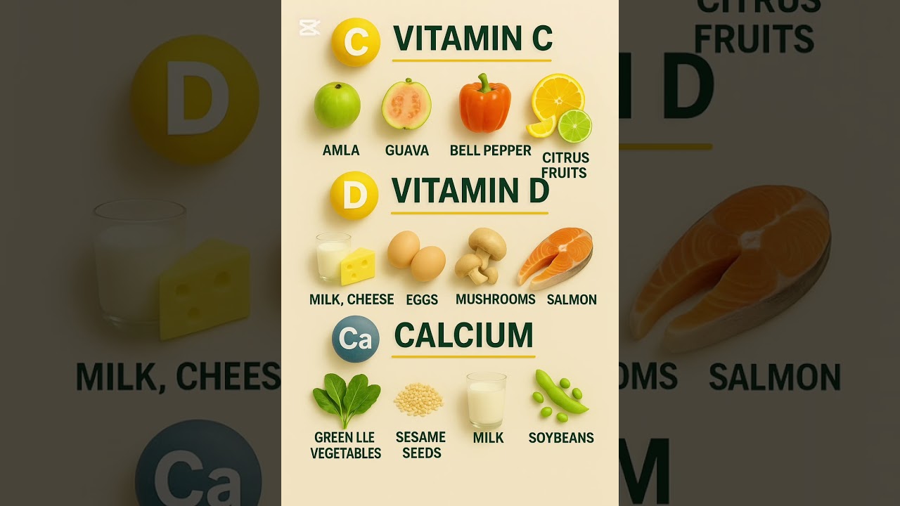#VitaminC, #VitaminD, #Calcium, #HealthyLiving, #EatHealthy, #Nutrition, #Wellness, #HealthyLifestyle, #Superfoods, #ImmunityBoost, #NaturalHealth, #BalancedDiet, #HealthTips, #FoodIsMedicine, #StayHealthy, #Nutrients, #HealthyBody, #VitaminsForLife, #Fitness, #SelfCare