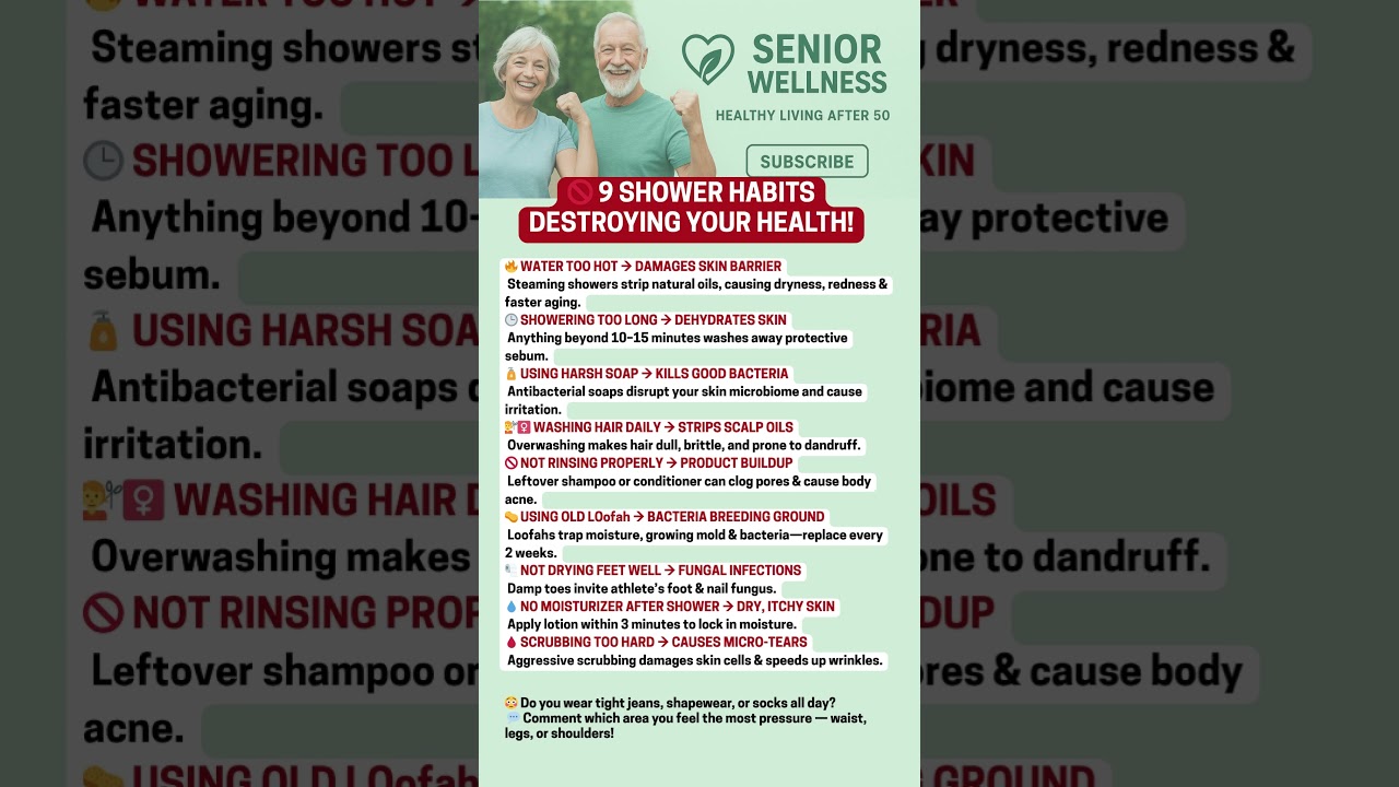 #SeniorWellness #ShowerHabits #HealthySkin #Over60Health #SeniorHealthTips #SkinCareOver50 #WellnessOver60 #DailyHabits #HealthyAging #NaturalWellness #SeniorFitness #BodyCare #LongevityTips #HealthAwareness