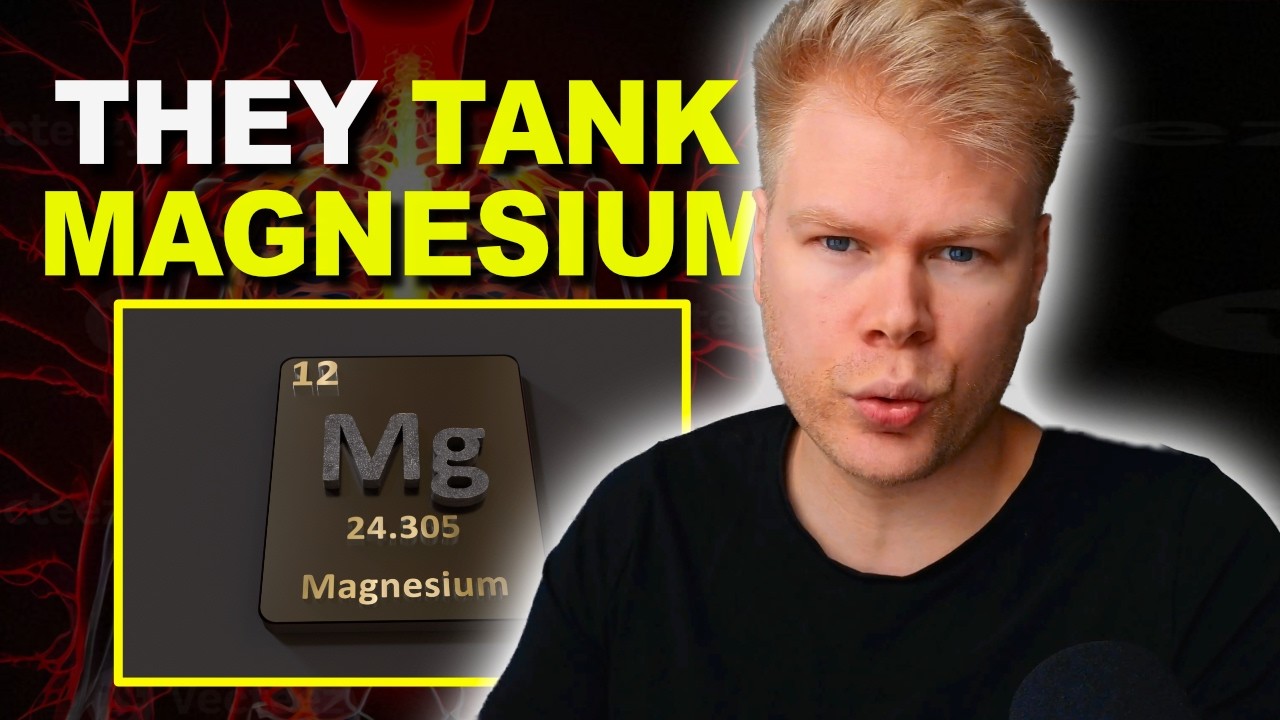 Let’s talk about supplements that have the potential to tank your magnesium levels. A lot of people are already walking around with a magnesium deficiency and the symptoms that come with it include things like fatigue, heart palpitations, muscle cramps, and constipation. In such a case, you might not realize that some supplements are making things worse. That doesn’t mean these supplements are bad, per se, just that the way they work in your body means that you need to be extra careful and definitely keep your magnesium intake in mind when taking them. And that’s because magnesium is one of the most important electrolytes out there. You need it for energy, muscle movement, nervous system relaxation, heart rhythm, and fluid balance. It helps balance other electrolytes. And like I just said, many people are not reaching the recommended daily intake. So chances that your magnesium is already low are pretty high. Often this is due to a diet low in whole grains, too much stress, and high doses of the supplements that we will talk about now. Let’s start with the most important one, which is vitamin D. This one is a classic magnesium drainer. Here’s the thing that most people don’t know. Your body can’t activate vitamin D without magnesium. The main activation steps happen first in the liver where it’s converted into calcidiol and then in the kidneys where it’s turned into the active hormone calcatriol. Both of these steps are enzyme driven and require magnesium as a co-actor. So without enough of it, these enzymes will slow down and your body will use up more magnesium to try to keep the activation going. The more vitamin D you take, the more pressure you put on these pathways and the more magnesium your body burns through to keep up. So, if you’re taking vitamin D regularly, you’re definitely increasing your demand for magnesium and definitely need to supplement it along with it. That’s because vitamin D also boosts calcium absorption from your gut. And when calcium goes up, magnesium goes down. More on that in a second. So, what you end up with is a double whammy. You use more magnesium to activate vitamin D and you also absorb more calcium which then pushes magnesium out even more. The result will be low magnesium symptoms like insomnia, cramps, anxiety, muscle twitching or fatigue. Ironically, the very same symptoms that most people are trying to fix with their vitamin D supplement. So again, always take vitamin D with magnesium. This is key. Next are calcium and sodium. These two are both direct magnesium antagonists. So, I’m grouping them together. Let’s start with calcium. You probably know calcium is important for bones, but it also competes with magnesium in a big way. Both calcium and magnesium are needed for your muscles to contract and relax. But if calcium levels get too high, it overstimulates your muscle cells and your nervous system. On a cellular level, calcium sits mostly outside your cells and magnesium sits mostly inside. They need to be in balance. And if you supplement calcium without enough magnesium to counter it, you shift that balance. And when there is more calcium than magnesium, it pushes magnesium out of your cells and messes with how your body uses it. Next is sodium. This is often overlooked, but it’s also a big deal, especially if you’re into electrolyte drinks or salty foods. Like calcium, sodium is a magnesium antagonist. That means the more of it you ingest, the more magnesium you need to balance it. They also have an inverse relationship in the kidneys. So when sodium levels are high, your kidneys tend to waste more magnesium in your urine. If you’re taking a lot of sodium through things like salt tablets, sports drinks, or just your diet, then your body is more likely to lose magnesium through peeing it out. All of this will be made worse by stress. During stress, your adrenal glands release aldoststerone, which is a hormone that tells your body to hold on to sodium and dump potassium and magnesium. In general, and this is the best way to understand this, is that you always want to look at your four main electrolytes. Calcium, magnesium, sodium, and potassium together. Most people have too much calcium and sodium and not enough magnesium and potassium to balance them. This creates kind of an electrical imbalance in your body because again, calcium and sodium sit mostly outside of your cells while magnesium and potassium are supposed to be inside. When the outside electrolytes are too high and the inside ones too low, then your nerves, muscles, and even hormone system can start to misfire. This again will show up in things like fatigue, cramps, anxiety, high blood pressure, and water retention. Just something to keep in mind when you’re analyzing your electrolytes. Let’s continue with creatine, which you probably didn’t connect to magnesium. Now, creatine doesn’t directly deplete magnesium in the same way that vitamin D or sodium and calcium do. But here’s what most people don’t realize. Creatine works by boosting ATP. So, your body’s main energy currency. And ATP has to bind with magnesium in order to be active. In fact, ATP is almost always found in the body as a magnesium ATP complex. Without magnesium, your cells can’t even really use that ATP to begin with. So, when you take creatine and increase your ATP levels, you’re also increasing your need for magnesium. Your body needs more magnesium to stabilize all that extra ATP floating around. On top of that, people who take creatine are usually working out more, so they’re lifting weights, sprinting, or doing highintensity training. All of that uses up magnesium, too. When you exercise, you lose magnesium through your sweat and urine. And intense training also puts stress on the body, which we just talked about as another factor that lowers magnesium. So, creatine may not be a direct magnesium depleter, but it raises your magnesium demand. If you’re u