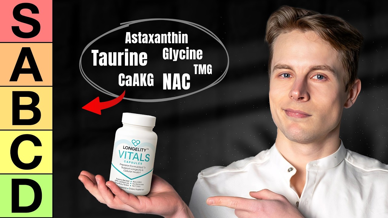 Recently, I ranked a 100 of the most popular supplements from worst to best. In this video, I’m going to focus only on the longevity supplements that have either been seen to extend lifespan in animals or they might have some potential longevity effects in humans. Timestamps for everything are down below. All right, let’s begin. First one, torine. So, torine is quite interesting. There is animal research that um it has been seen to extend lifespan in mice. the from two years ago there was the study and uh in humans we have quite a lot of clinical trials showing that it improves aspects of metabolic health. So it’s uh relatively safe, little to no side effects. It improves exercise performance, improves blood markers, and in animals it has been seen to extend lifespan. So based on this criteria, I would put it into the gut tier because, you know, obviously we can’t say or know if torine is going to extend lifespan in humans, but you know, the human studies indicate that it does help with many aspects of overall health and human longevity. you know the best way to track it is yeah just make sure you have a lower risk of these chronic diseases like lower risk of heart disease Alzheimer’s and metalic syndrome and diabetes etc that would shorten your lifespan so something that would reduce that uh risk would be u quite useful epigenine you know epigenine mostly helps with again the NAD metabolism it inhibits CD38 which is a glyoprotein that lowers your NAD levels now there isn’t any strong evidence that epigenine would extend animal lifespan and obviously human research is much more limited. So I would put it in the okay tier. I do think that inhibiting CD38 with something like apigenine would be a part of a longevity stack and would be part of a longevity strategy when you’re talking about uh long-term um longevity. Uh Reseratrol. Now many people think that reseratrol is one of the best longevity supplements out there but uh you know the actual high quality animal studies even don’t suggest that it is a life extension molecule. Now it was seen to extend lifespan only under one condition which is um essentially like metabolic syndrome and obesity. So mice who are fed and obes diet they have pretty much like obesity and diabetes then uh reseratrol does extend their lifespan but it doesn’t really do that under other conditions and human research also suggests that reseratrol improves lipids and blood sugar and inflammation markers only if you have diabetes or metabolic syndrome and it might have some negative effects as well on things like reducing the um benefits you get from exercise and reducing your V2 adaptation. So, it’s definitely not a useful supplement for an otherwise healthy individual in my opinion. And the animal data also suggests that it’s not particularly um effective. So, you know, I would put it in the junk tier based on all of that. But, um in the previous video, the 100 supplement ranking, I did put it in the junk tier. But here, when we’re talking about just longevity, I’ll just put it in the bad tier. uh because yes under certain conditions under certain criteria it might have some effects but it’s not really that effective. Now rapomycin obviously it’s not a supplement. I’m just going to put it into this video again because people just ask about it. What do you think about rapamy and it’s one of the more you know biggest candidate for extending human lifespan as well. There’s no evidence that it would do so currently, but uh rapamyin is the most consistently shown uh is is a is a molecule that’s been seen to extend animal lifespan most consistently in different organisms and most potently as well. So obviously based on that it would be just got here uh from a perspective of a life extension if we were to look at it from the animal data from human data it’s very early to say but uh I’ve been actually positively surprised by rapamyin over the last few years um in the past I might have been skeptical about it that you know okay it inhibits mTor it might be bad for muscle maintenance it might be bad for um preserving brain cells because you need mtor as well for growing brain cells neurogenesis But uh there have been a few studies on humans over the last few years that show that rapomyin not only didn’t result in muscle loss but actually help to preserve muscle as uh the in older people. So that’s quite interesting. I would say that this uh would really increase potential uh for rapamy for being an otherwise healthy like a longevity pharmaceutical especially for elderly people. So yeah with limited evidence I’m going to put it in the god tier but based on the um animal data it definitely belongs in the god tier from a life extension perspective solely metformin so this is pretty much paired with rapomy always and similar reason it’s a very popular anti-aging uh drug or people take it for anti-aging purposes but you know there’s much better alternatives to metformin such as sgt1 inhibitors that have been seen to extend lifespan in animals and appear to have much fewer side effects than metformin. So metformin obviously is very cheap. It’s uh easy to find. So it has obviously some potential and it definitely is beneficial for diabetics or people with insulin resistance. But um it also has a few more side effects compared to like uh some of these other SGLT one inhibitors. And metformin use in some studies is seen to be associated with longevity. But those studies tend to be um a bit uh poorly done. And if you just look at yeah what what has h what happens to people who don’t have diabetes what if they take mtorine then uh it doesn’t extend their lifespan or it’s not associated with increased longevity in those individuals either. So I’m going to put it in the okay tier from the perspective of longevity and lifespan because the animal data also isn’t that consistent with metformin calcium alpha ketogluterate. So thi