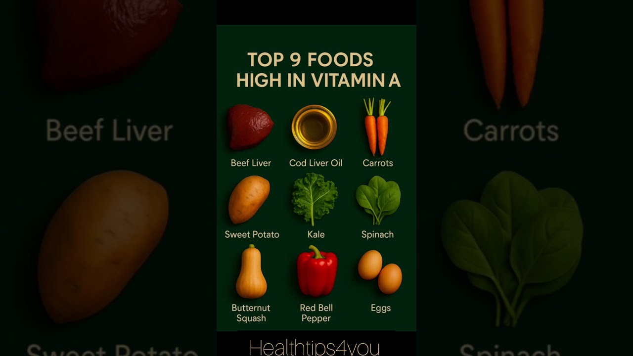 top vitamin A foods, foods rich in vitamin A, vitamin A benefits, vitamin A for vision, vitamin A for skin, vitamin A for immunity, sweet potatoes vitamin A, carrots beta-carotene, spinach vitamin A benefits, kale vitamin A foods, red bell peppers vitamin A, mango vitamin A source, cod liver oil vitamin A, beef liver vitamin A, egg yolks vitamin A, best foods for vitamin A, nutrient-rich foods for eyes, vitamin A diet tips, viral health shorts, healthy eating vitamin A, immunity boosting foods, foods for glowing skin, natural ways to boost vitamin A, superfoods for vision