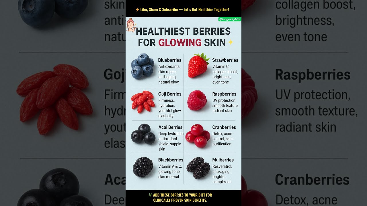 #healthiestberriesforglowingskin #glowingskin #beautynutrition #naturalglow #skinhealth #skinnutrition #glowfromwithin #superfoodsforskin #radiantskin #eatforglow #collagenboost #naturalbeautytips #antiagingfoods #clearskintips #healthyglow #shorts #glowtips #wellnesstribe