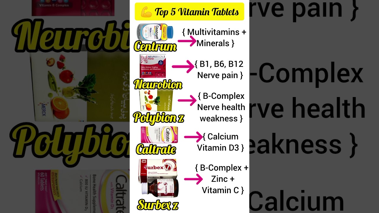 #VitaminTablets #Top5Vitamins #Multivitamins #SurbexZ #NeurobionForte #Centrum #CaltrateD #DoctorAbid #HealthTips #EnergyBooster #MedicalEducation #HealthCare #VitaminsForEnergy