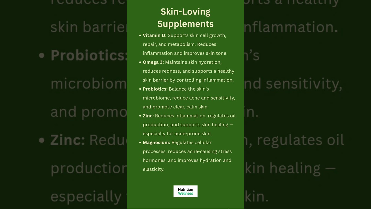skin-loving supplements, glowing skin, clear skin, supplements for skin, supplements for acne, vitamin D, omega-3, probiotics for skin, zinc for skin, magnesium for skin, reduce inflammation, skin hydration, skin elasticity, skin microbiome, holistic skincare, beauty from within, nutrition for skin, wellness tips, ayurveda